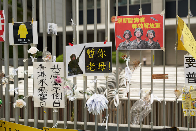 Tất cả các hoạt động trên được diễn ra dưới sự giám sát của nhà nước Trung Quốc. Tại một trạm cung cấp, các tình nguyện viên đã phân phát mặt nạ. “Hãy đeo mặt nạ vào, bảo vệ danh tính của bạn”, họ nói với đám đông. Đối với một số người, sự ẩn danh có thể cung cấp một sự che chở cho những hành động triệt để hơn – như cơn bão tràn vào cơ quan lập pháp. Nhưng đối với hầu hết ngừoi Hồng Kông, đó là một lời nhắc nhở về những hiểm nguy có thể xảy ra nếu như phong trào thất bại.